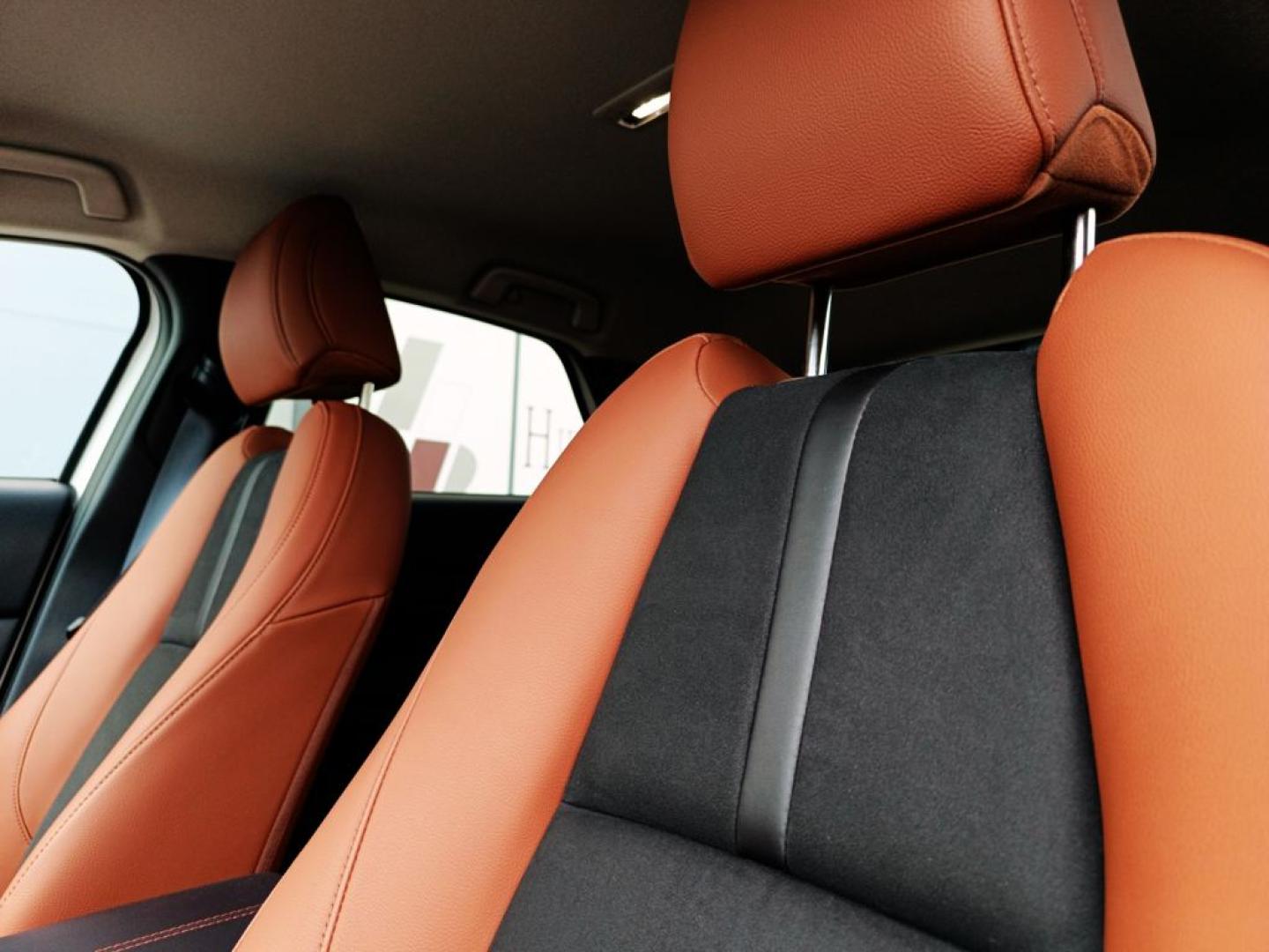 - Tapicería símil cuero color Terracota con zonas en piel vuelta sintética negra.