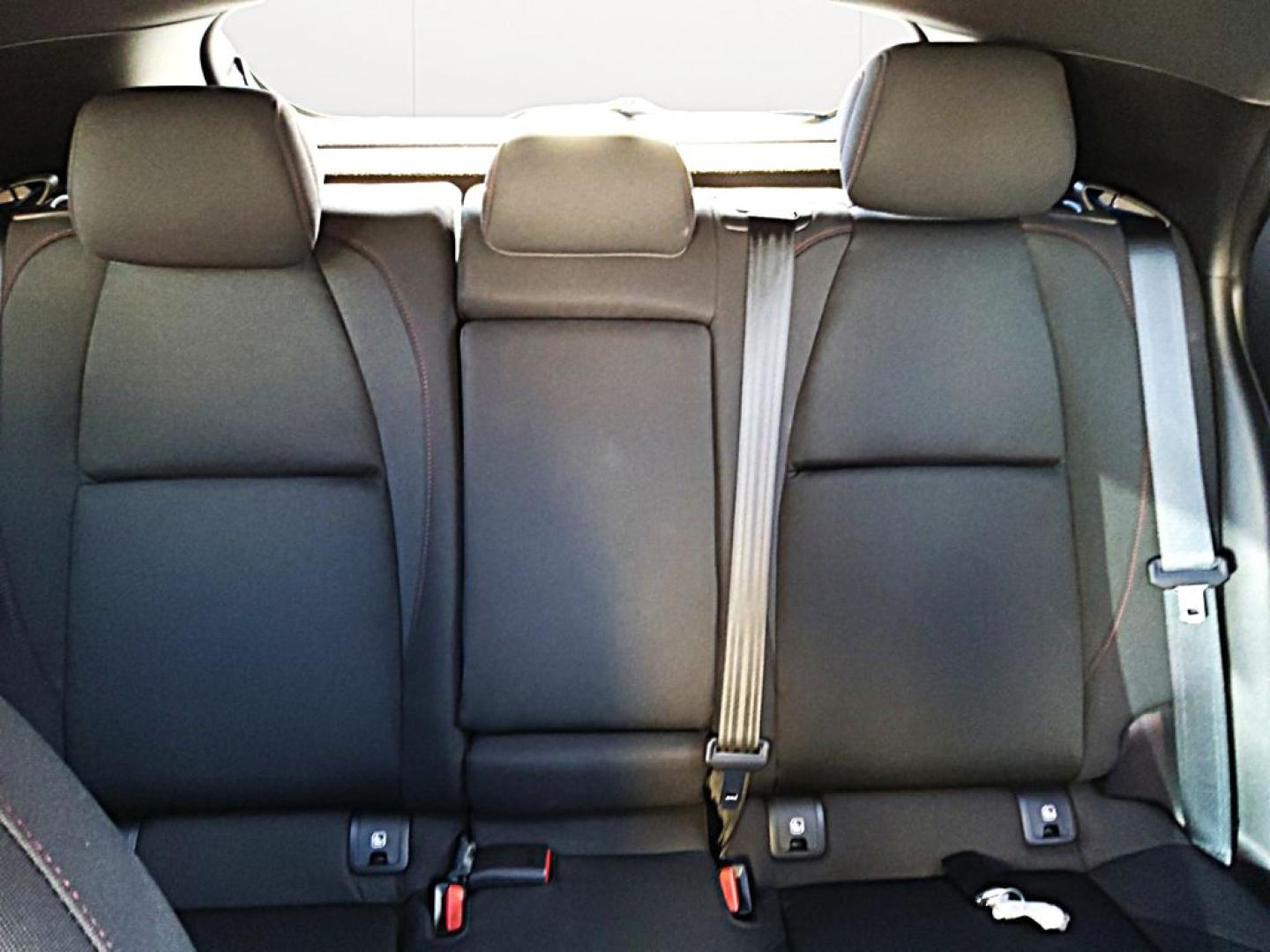 - Tapicería de tela negra con costuras en rojo