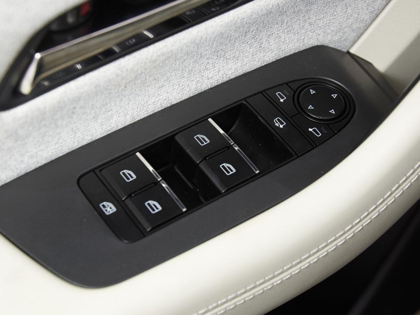 - Moldura central del salpicadero y paneles de las puertas en tela blanca